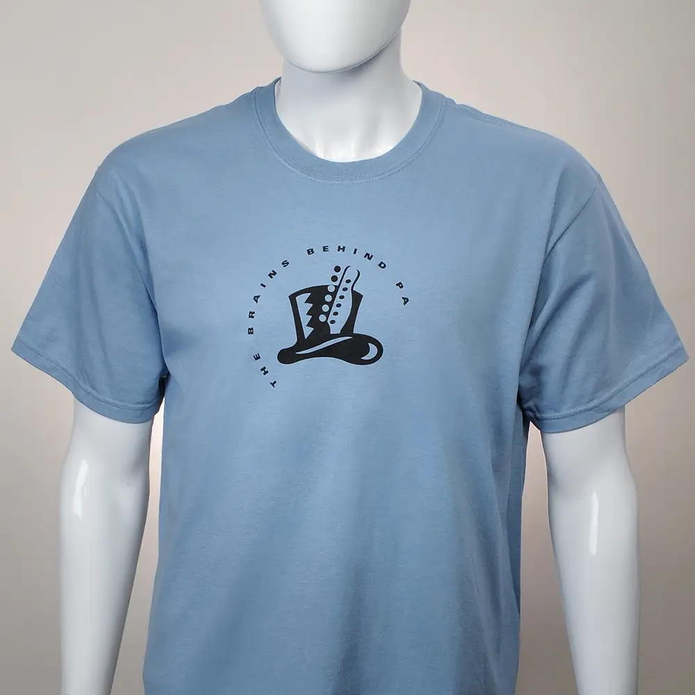 The Brains Behind Pa Logo T-shirt • Silk screen printed • 100% cotton, pale blue/gray • Available in M, L, XL
