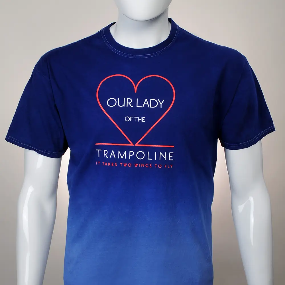 Our Lady of the Trampoline T-shirt • Silk screen printed • 100% cotton, blue gradation color • Available in S, M, L, XL, 2XL